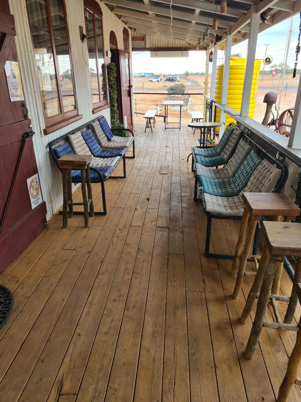 Start your day with barista-made coffee and light breakfast options, then return later to unwind with a cold beer, wine, or spirit on the verandah. For those seeking a memorable dining experience, the pub’s “Fancy Eatin’ Table” offers a unique outback twist on evening meals. Travelling with a group? Advance bookings are welcome, making it an ideal stop for road trips and tour groups alike.
